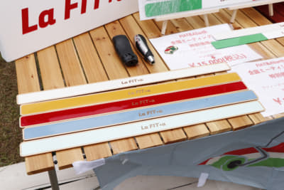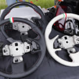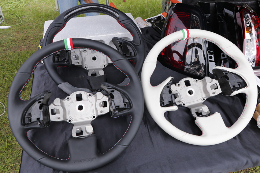 会場にはパーツメーカーやショップのコーナーもあって、ラフィータのテントでは新製品「コーディネートプレート」が注目を集めた。また、アルバートリックのテントでは、発売されたばかりのステアリングを披露。純正パドルシフトにも対応するという。