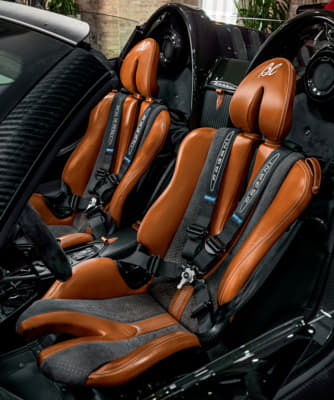 じつはオープンモデルにも関わらず「クーペよりもスパルタン」がテーマ。コーナリング時における横方向のGは最大1.9と謳われており、市販車でもっとも高いレベルのGを誇るとされるブガッティ・シロンの1.5を遥かに凌駕している。