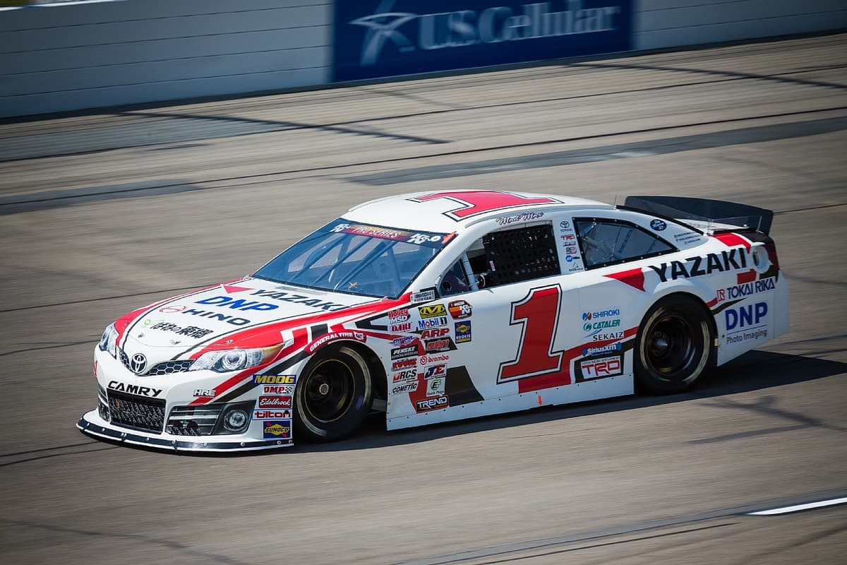そして迎えた実践の場、ワンデーで行われるこのK&N Proシリーズ第7戦は、午後7時30分に決勝レースを迎えた。予選で5番グリッドを獲得した #1 YAZAKI/DNP TOYOTA TECHNICAL COLLEGE TOYOTA CAMRYは、多少の接触があったものの、トップ5のポジションをキープ。しかし、そのマシンはオーバーステア気味で、その症状はレースが進むにつれて進行していく状況で苦戦する。50周終わりで最初のブレイクタイムを迎えたマクラフリン選手はすかさずピットイン。チームクルーがマシンをチェック。無理をせず現状をキープしながらの走行を指示。