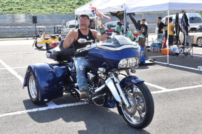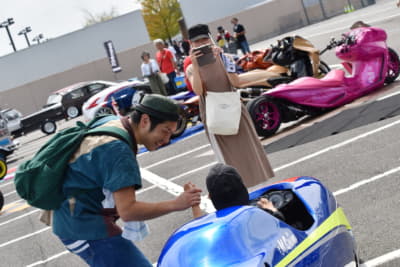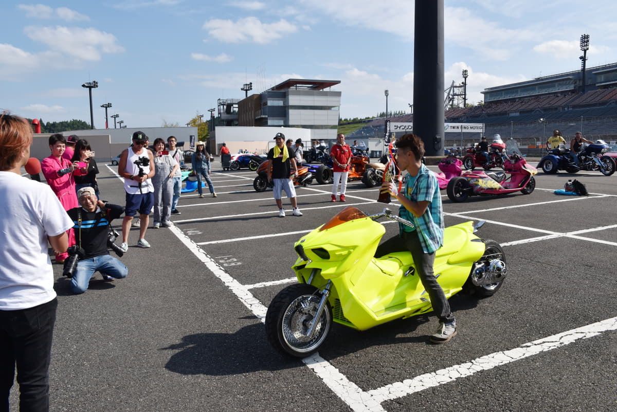 この日は、ツインリンクもてぎのロードコース(SUPER GTやMotoGPなどで使用される1周4.8kmの国際レーシングコース)でのデモ走行やパレードランも用意。第1回目は、2輪及び4輪車の参加が比較的多かったが、今回は3輪車が多数参加した。