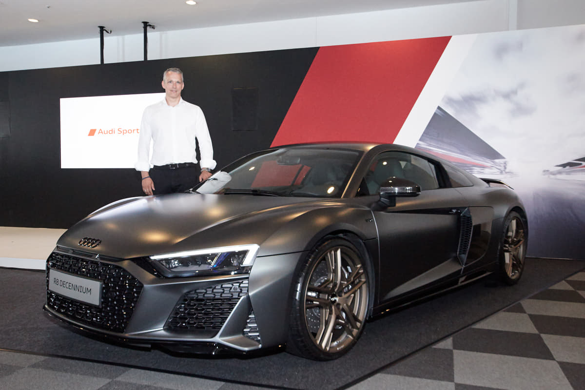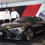 アウディ ジャパンは、同社の市販モデルとして過去最高の最高出力620psを発生するV10エンジンを搭載した新型「R8」を発表。12月からデリバリーする。また同日、「鈴鹿10時間耐久レース」の会場でV10エンジン10周年記念限定モデル「R8 Decennium(デセニウム)」を公開した。