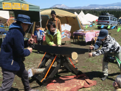 また、今回は新たな試みとして、チーム制の競技「アクティブフィールド」も実施。大縄跳び、丸太切り、リンボーダンス、火起こし、大声選手権といったアウトドアにちなんだ5種目が行われる。