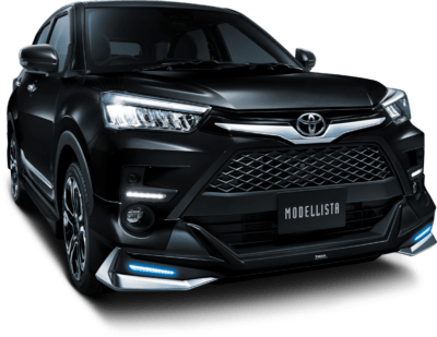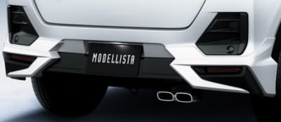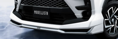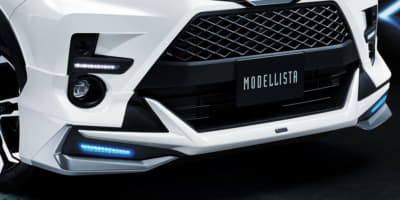 モデリスタは2タイプ用意し、いずれもフロント、サイド、リヤのパーツで構成。ひとつは「アドバンス・ブラスト・スタイル」で、コンパクトSUVなライズをダイナミックに見せる大胆なデザインを採用。フロントスポイラーの左右にはLEDのイルミネーションを配し、夜間の見栄えも考慮されている。