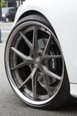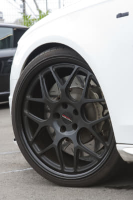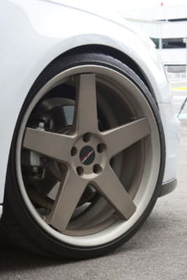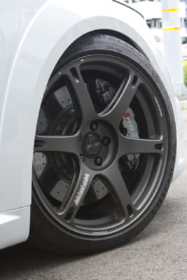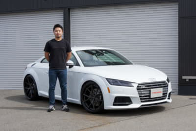 USグリルにUSマーカーを装着した田渕サンのTT。アクセントとしてのUS仕様がキマっています。以前の愛車S5の時はハイパーフォージドのC10・20インチを装着していたのだそう。ブラッシュドが好きで今回はこのフィニッシュを選んだのだとか。オーナー欠席でスタッフの享祐サンが代理で。