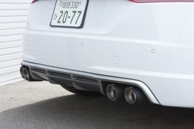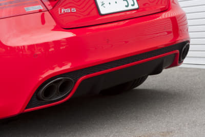 DTシステムズのパワーコントロールRXにより500ps仕様へとチューンナップされているこのS6アバント。低速トルクがアップして高速域もどこまでも伸びる感覚で滑らかなパワーがあるのだとか。リヤアンダーのカーボン風ラッピングは友人に協力してもらった力作なんだそうですよ。