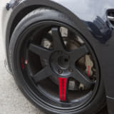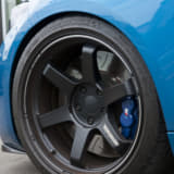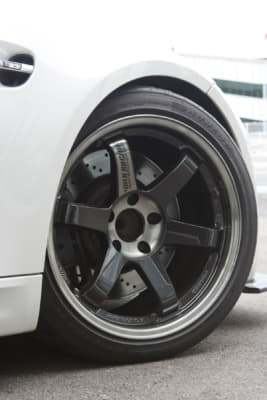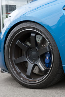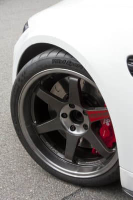 10セット限定のメイカーズオリジナルのボルクレーシングTE37をセット。マットブラックのフェイスに、オリジナルサイズのリム幅をこれで獲得。マルチスリット入りの380φのローターを有する豪華なブレーキキットもこれまたメイカーズのオリジナル仕様。オーナー不在のため代理で享祐サンが。