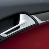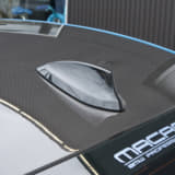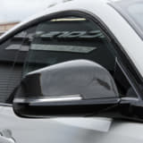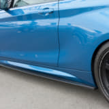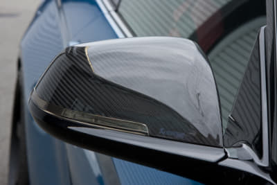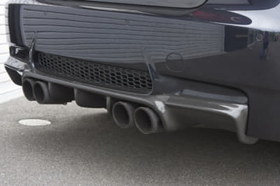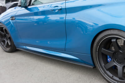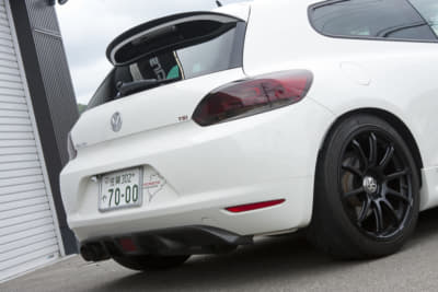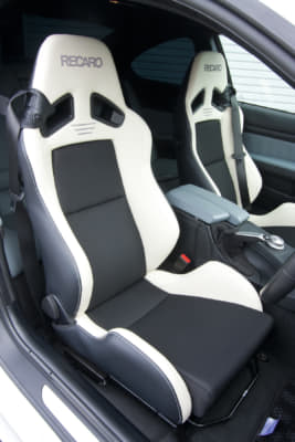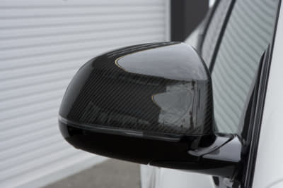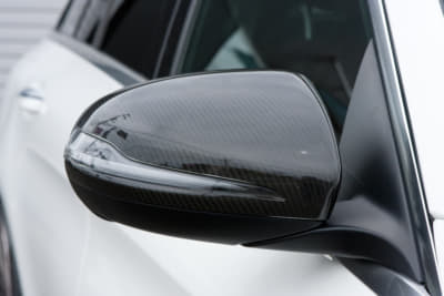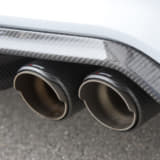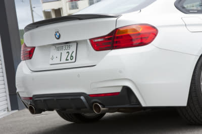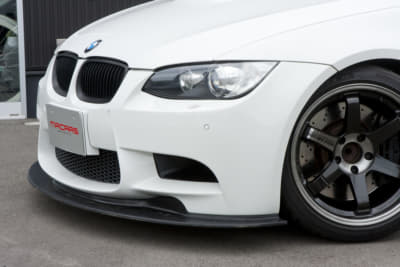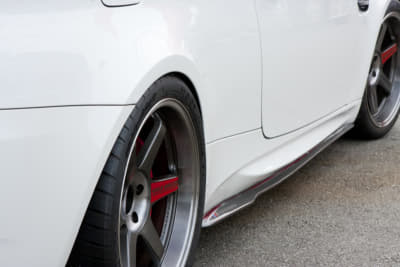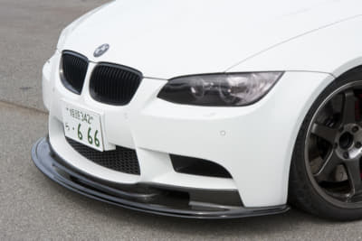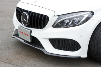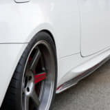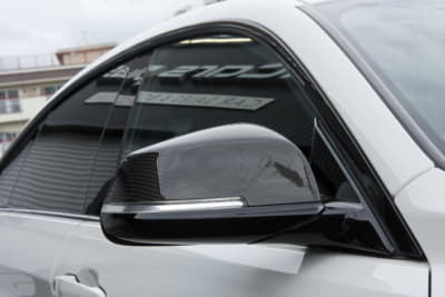 サイドを除くエアロには「レーシー風にはしたく無い」と、控えめでライトスポーティな各ブランドのミックスエアロをチョイス。しかもカーボンが目立たないようにとカーボンの上に薄く黒でクリアコートしている念の入れよう。実はドアノブもセンター部分だけ黒にラッピングするなど細部がオシャレ!