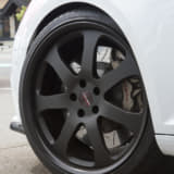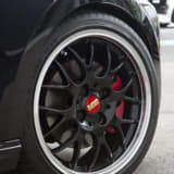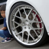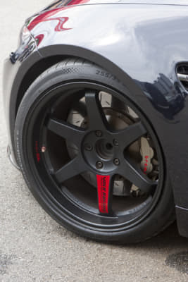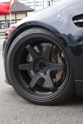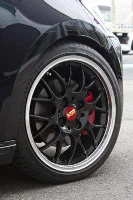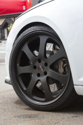 メッキ部分やグリルの枠など、各部にブラックonブラックを推し進めたソリッドなボディがアピールポイントだという辰巳サン。アクセントとしてキャリパーにのみ赤を差しているのもオシャレですね。今度はBBSのRID・20インチにインチアップしたい、と次の抱負を語ってくれました。