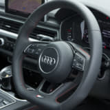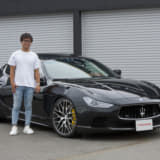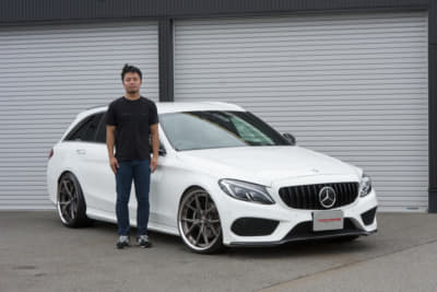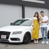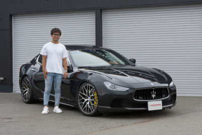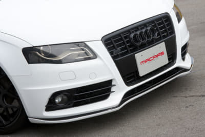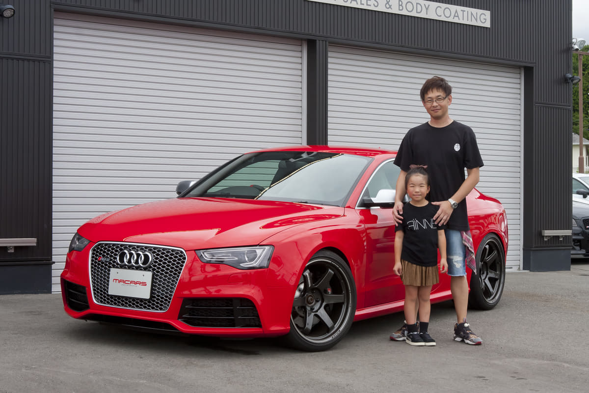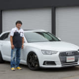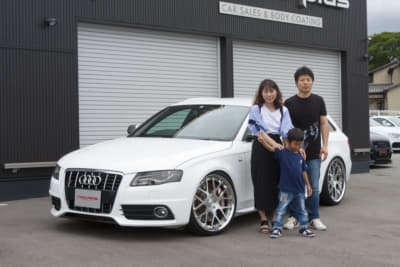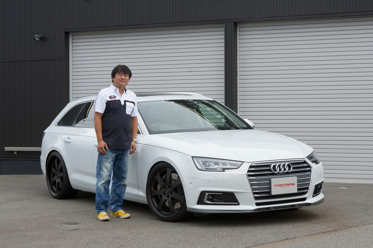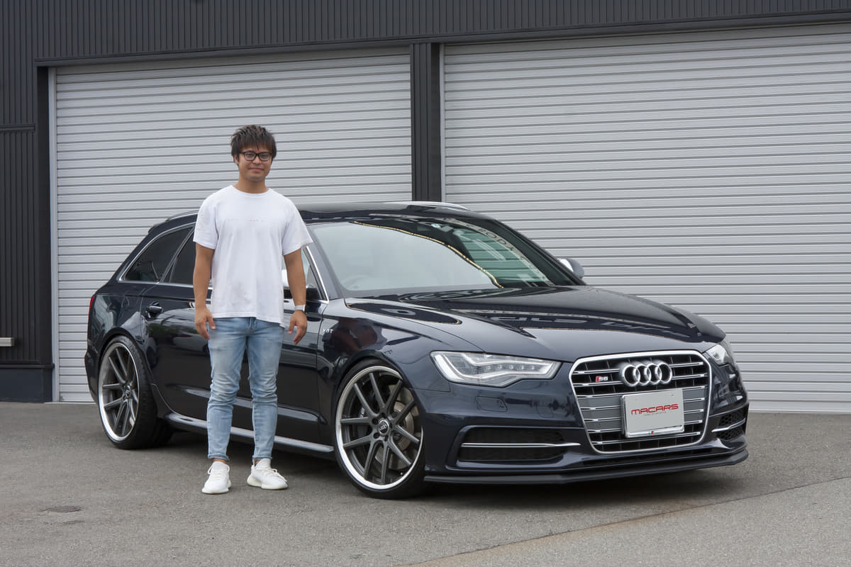 リップはよくあるカーボンではなく、敢えての艶ありピアノブラックをチョイス。シブいばかりじゃなく敢えておしゃれさを狙ったんだとか。派手にならずにオシャレに乗りたいと各部をブラッシュアップした大人仕様が好印象。オーナー欠席のため、A5に乗っているという息子の勝成サンが代理で登場。