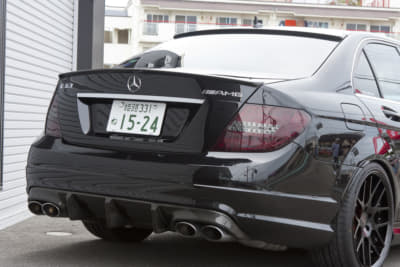 CE63AMG純正カーボンディフューザー Gレイヤードサウンド4ch JBBS・FS(8.5×19/9.5×19) Kグッドイヤー・イーグルF1(245/40:275/35) MNKW・Ver.3 QAMG純正カーボンミラーカバー、各部ピアノブラックペイント、パナメリカーナグリル