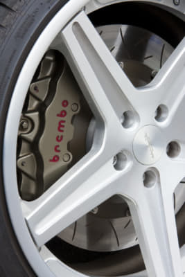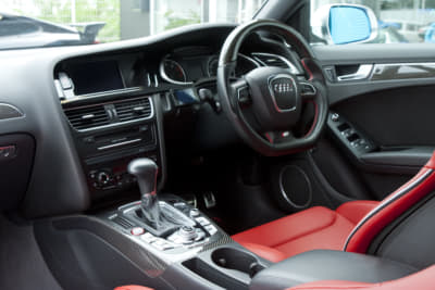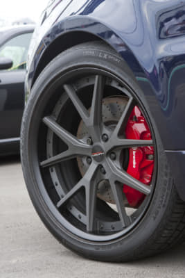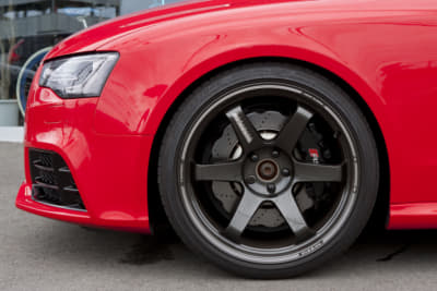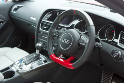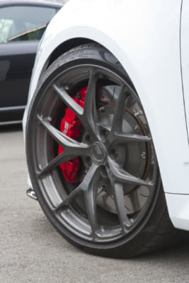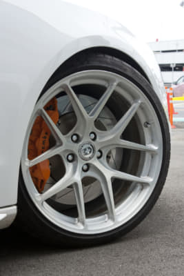 内装をRSとSで融合させたS5。なんとブレーキキャリパーには日産R35GT-R用の6potを加工流用。ローターはRddの380φ。奥様に似合う優雅な仕様の中にも男心をくすぐるハードなメニューがそこかしこに隠れる。こんなところにもメイカーズのお得意のスタイルが見え隠れするのです!