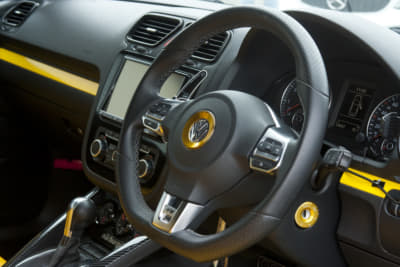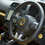 アドバンのホイールにブレンボのキャリパー、Rddのローターなどレーシーなフットワーク。さらにレカロ・スポーツスターに合わせたインパネ周りの黄色のラインやホーンボタン&キーリングのゴールドの差し色がナイスです。現状はリアのブレーキローターがノーマルのためRddに変えたいのだとか。