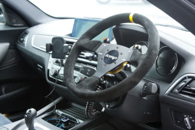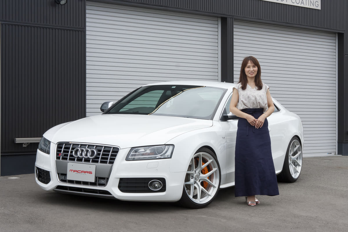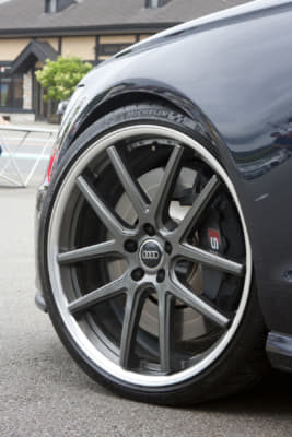 レガシィからこのアウディに乗り換えて1年ちょっとという細木サン。クワトロ4WDの走りはやはり安定感があってお気に入りなのだとか。大口径の5スポークホイールに380φのビッグローターはやはり絶大な存在感。「次はマフラーを2本出しにしたいです」と次の抱負を語ってくれました。