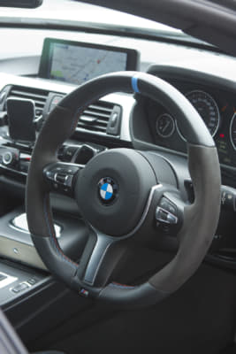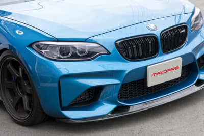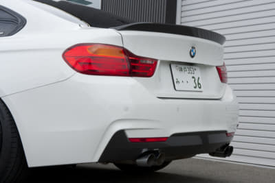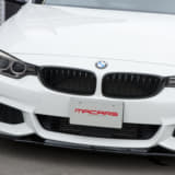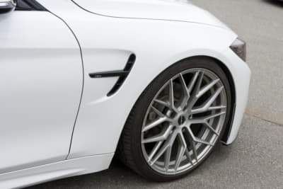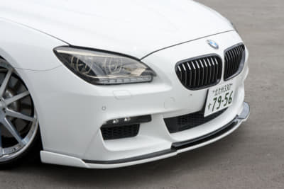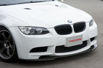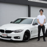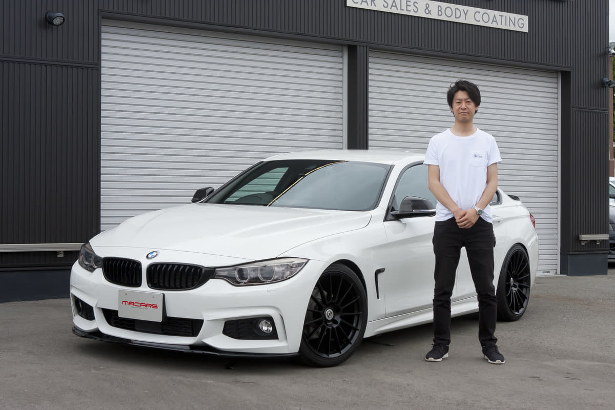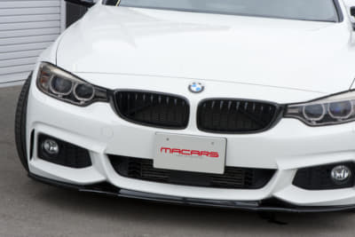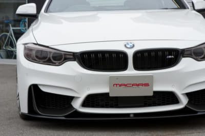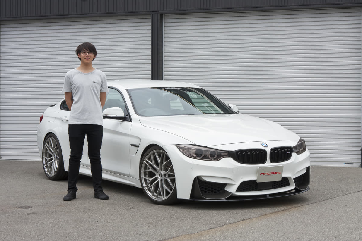 一見M4のフェイスまわり。でも実体は420iという金澤サンのグランクーぺ。ボンネット、フェンダー、バンパー、グリル、もちろんインナーフェンダーまで全てM4純正へとコンバートし大手術した顔面バケ仕様! このBMWの前はワゴンRだったということなのでそのギャップもスゴイです!