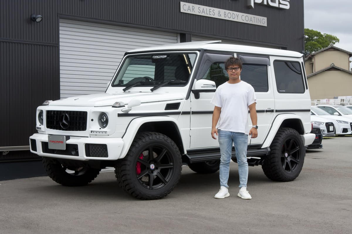 カーボンリップ&20インチのモディファイ。US純正のグリルなど定番ながらもシンプルかつスパルタンなルックスが好印象です。今後はメイカーズ・プラスでのコーティング作業やしっかりとしたメンテナンスに精を出す予定とか。オーナーの甥っ子の陸隼クンと姪っ子の結愛チャンが代理で登場。
