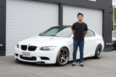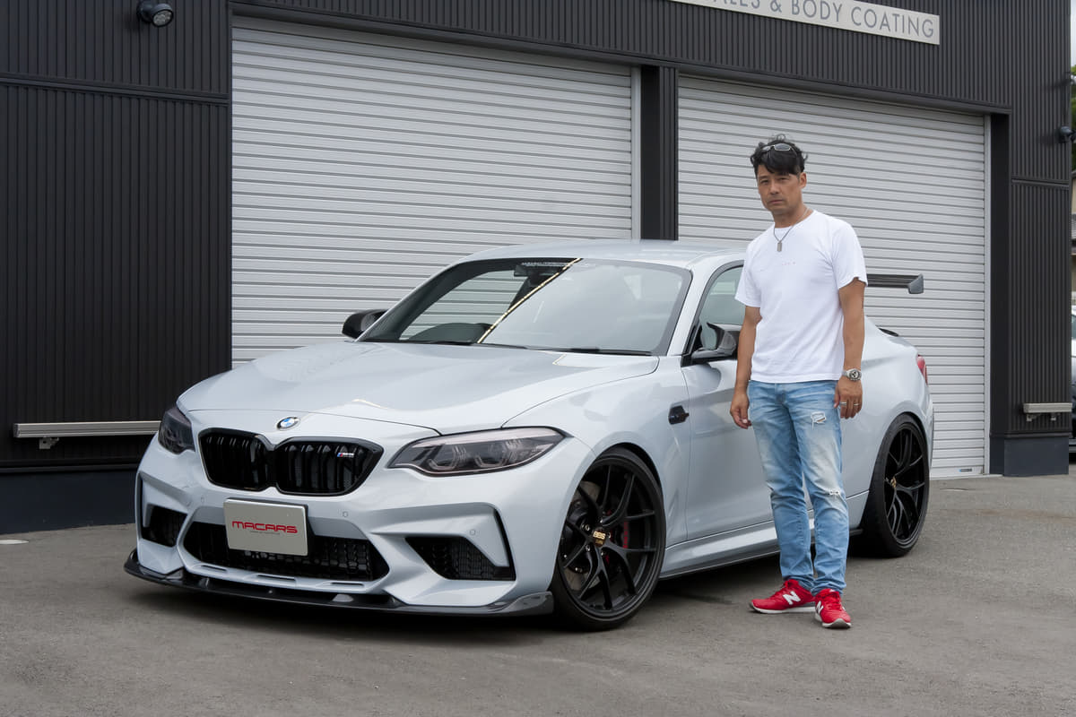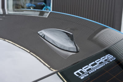 2017年10月以来の登場で、その時は年間のスタコン3位を獲得した前田サン。前回からはドライカーボンルーフ、3Dデザインのサイドスカートが新たな変更点。今後はチャージパイプも変更したいんだとか。アルカンターラで真円のステアリングはM4のCS純正で実にしっくりくる仕様だ。