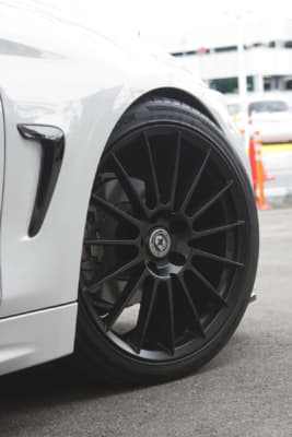 Aリーガーチューニング D3Dデザイン EMパフォーマンス JHRE・FF15(8.5×19/9.5×19) Kハンコック・ヴェンタスV12 EVO2(225/40:255/35) MNKW・Ver.3 Oアイゼンマン Pデジテック Qミラーカバー、3Mグロスブラックラッピング・グリル、ヘッドライト・ペイントプロテクション他 RLCI用エアコンパネル他 Sペダルボックス
