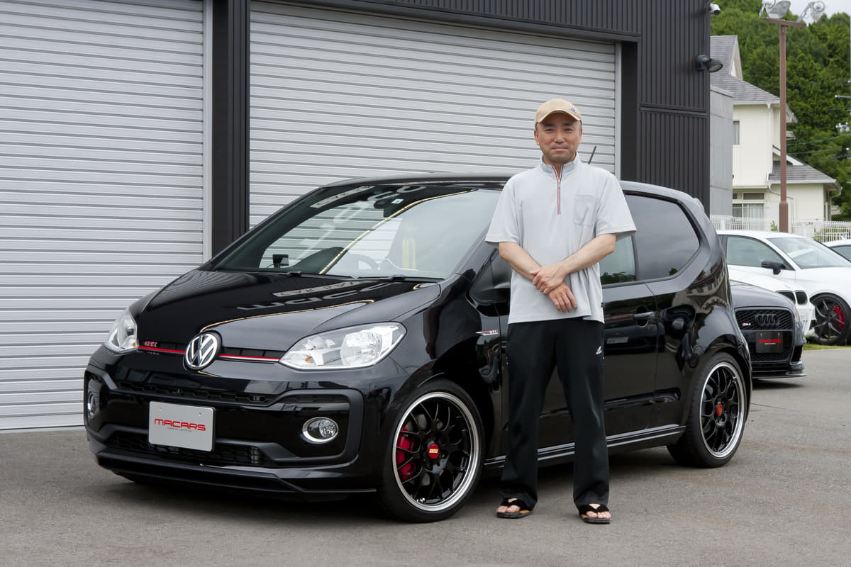 中西サンの600台限定のUP!GTI。エアロや吸気系パーツが少ないのが悩みとか。なんとシートはレカロ派垂涎のRSM。某ショップで展示品だったのを譲ってもらった一品なんだとか。ただ「レカロ初心者にはハードです」とのこと。なんと車内のフサはけんか祭りで有名な木場色のフサです。