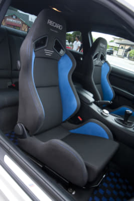 B7→B8→RS3と乗り継いできたというアウディ好きなオーナー。メイカーズスタイルを忠実にこなしつつ、エンブレムも黒にしていることから、今度はマフラーも黒にしようかなぁ~と思案中。新作のレカロ・スポーツスターは注文済み。オーナーが欠席のため西尾代表の娘さん、舞サンが代理で。