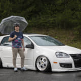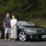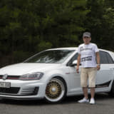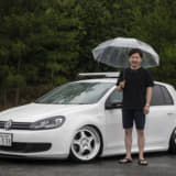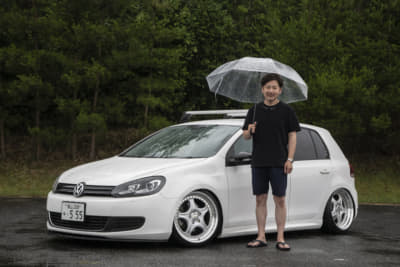 このところ徐々に減ってきた感のあるゴルフ5ですが、高本サンはユニークなホイールとエアサスで登場。かつてのポルシェ928を思わせるホイールは、ポルシェのオーナメントを付けた上にゴールドピアスボルトに交換してます。ベース車自体がMTでウインドウガラスがブルーというレアなモデルとあって、これからも長く愛用してほしいですね。