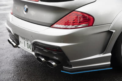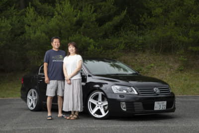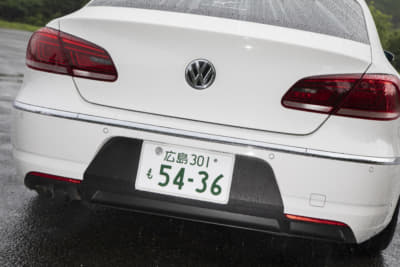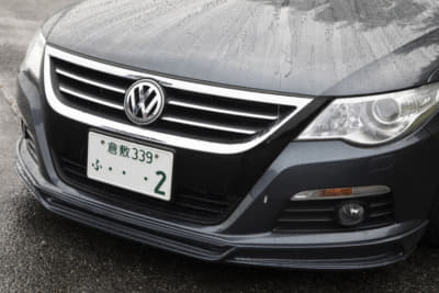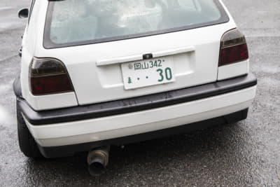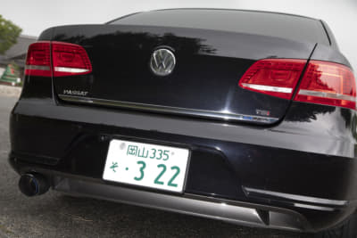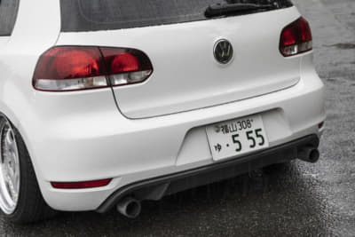 シックな印象ですが、じつはフロントバンパーの下半分はゴルフ6GTIのモノに変わってて、さりげなくスポーティに。リアバンパーもツルツルに仕上げてガンメタに塗装済み。マフラーカッターとのマッチングも申し分なしですね。ただ、規子夫人の「アルテオンがいい」の声にどう対処するかが問題?