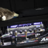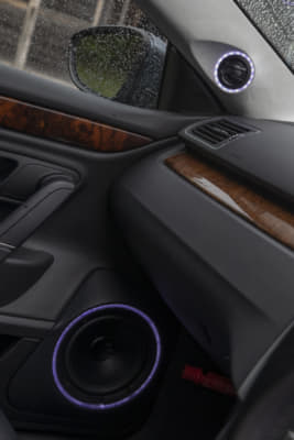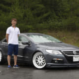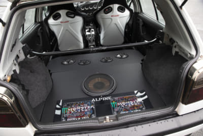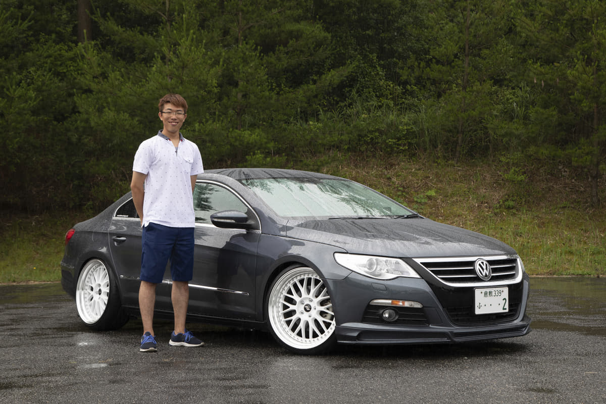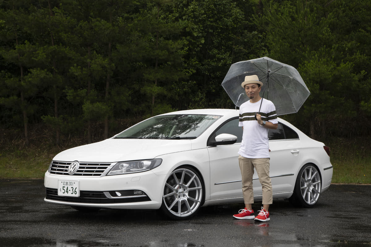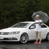 ホワイトのステップリムメッシュホイール、リップスポイラーでパサートCCをちょっとラジカルに演出。ベース車本来のスペシャリティさが一段と出たようです。内装もイルミ付きのスピーカーで音だけでなくビジュアルでもうまく変化をつけていて、20歳の清水サンらしいモディファイが新鮮に映りました。