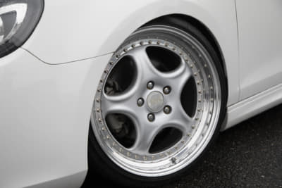 M3を愛用するお父さんから譲り受けた320に初心者マークを付けて登場してくれた妹尾サン。ドライバー的にもスタイルアップ的にもまさにこれからという初々しさが印象的でした。でもこれから目指すのはホイールのほかに可変バルブ付きマフラーというからおもしろい。いいサウンドを手に入れたらまたぜひ来てくださいね。