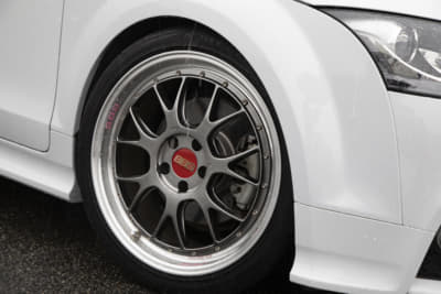 なかなかにフォーマルなムードを湛えた美しいTTSです。クラシックなメッシュホイールと赤いキャップが味を出してますね。ブレーキやコンピュータなどチューニングにも力が入っているのも見事で、熟年オーナーらしい深みと品格を感じさせてくれますね。