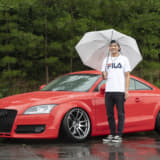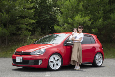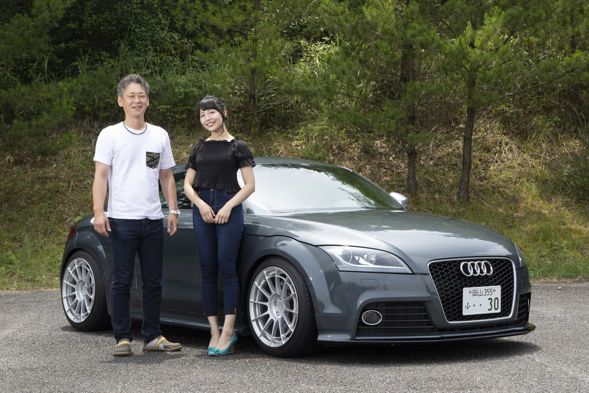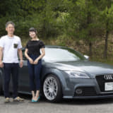 なんとも味のある深いグリーンが魅力のTTS。そこでホイールは「おとなしめで感じイイものを」とコレになったそうで、フロントリップ同様、適度な主張を感じさせるうまい選択ですね。とはいえメインはTTSらしくチューニングのようで、次回はダウンパイプを狙ってます。娘の愛奈サンと。