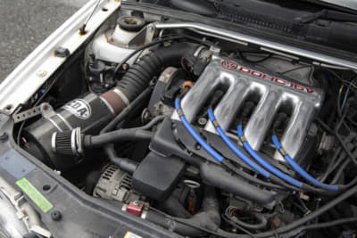 クワトロポルテとリーガーホイールというレアな組み合わせを披露してくれました。お気に入りはやはりホイールで、元はガンメタだったのを黒のパウダーコートで引き締めています。レブテックも「回転の伸びがよくなった」と満足そう。つぎはフルエキゾーストシステムを狙っていて、フェラーリ製エンジンのサウンドを思い切り堪能できそうですね。