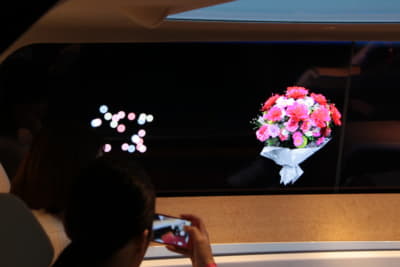 具体的に言えば、各シートにはエアコンを内蔵しており、乗員がもたれかかるとサーモセンサーが検知した各部の体温に応じて自動的に風量や暖かさ・冷たさを調節。また、サンルーフを含めた各ウィンドウには有機ELの調光ディスプレイが採用され、フリック操作に応じてサンシェードとして使用できるようになっている。