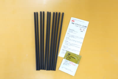 プライマーが乾いたところで、両面テープの剥離紙を剥がして装着する。万一失敗しても、大判なので残った両面テープで再トライできるからご安心を。