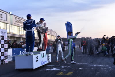 採点システムには、昨年大会と同様に、車両に搭載した機器により速度や角度の大きさ、角度の安定性などの計測が可能なエレクトリック・スコアリングシステムを採用。その数値ベースに、3人の審査員がライン、アングル(角度)、スタイルを採点し、速度(振り出し&平均)とともに判定を行う。D1グランプリにも採用されている採点方法だ。