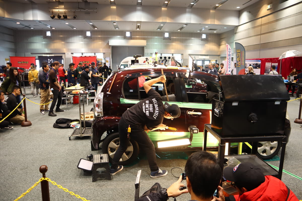 街中の修理工場やカーショップでも見かけるようになった「デントリペア」という言葉。凹みを意味する”dent”と修復の”repair”をあわせた技術のことだが、12月7日〜8日に大阪府・堺市産業振興センターにてデントリペア技術を競う大会「第3回 IASRE JAPAN」が開催されている。