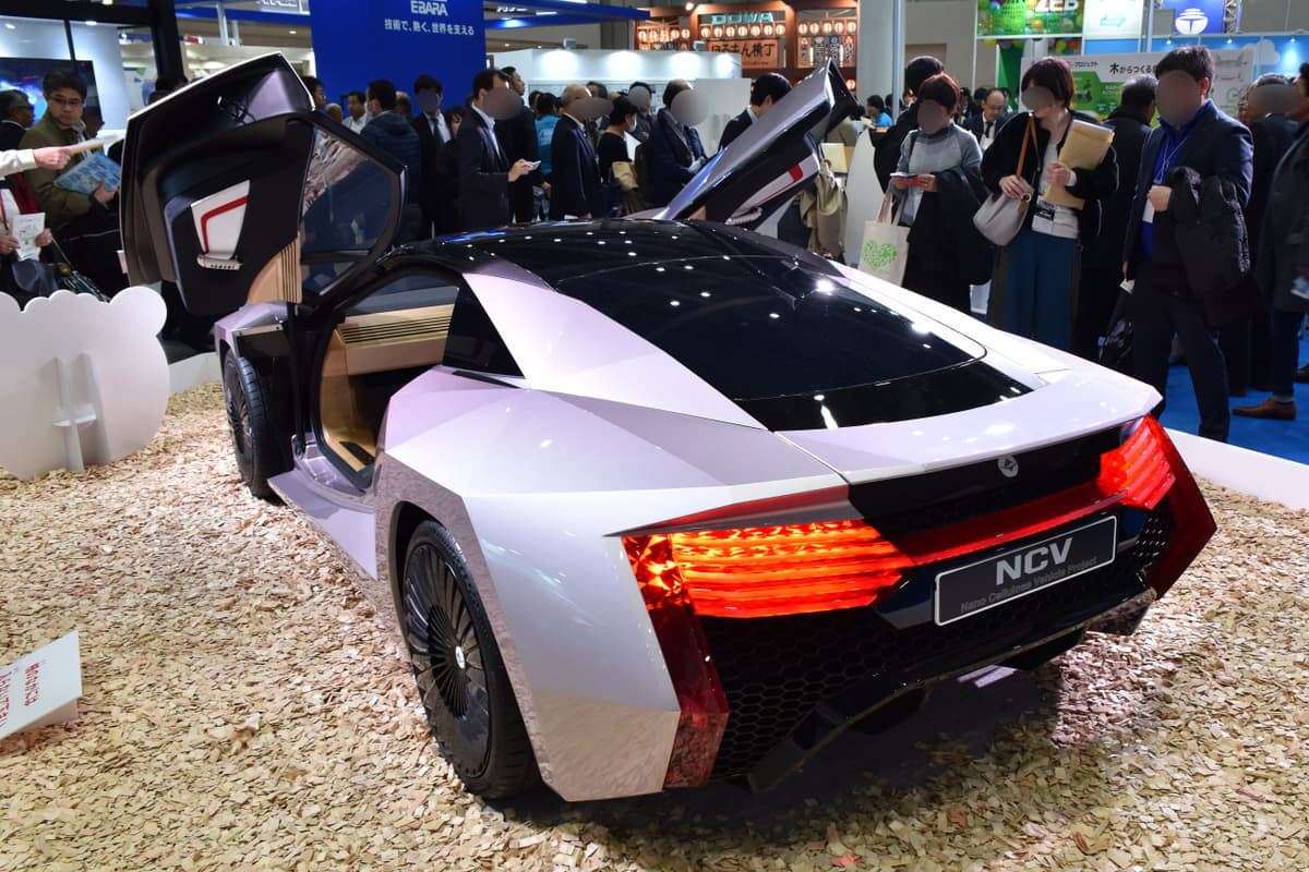1台は「NCV」。植物由来の新素材であるセルロースナノファイバー(CNF)を用いた、まさに樹木から作る軽量自動車で、NCVという車名は、ナノ・セルロース・ヴィークルの頭文字から取っている。