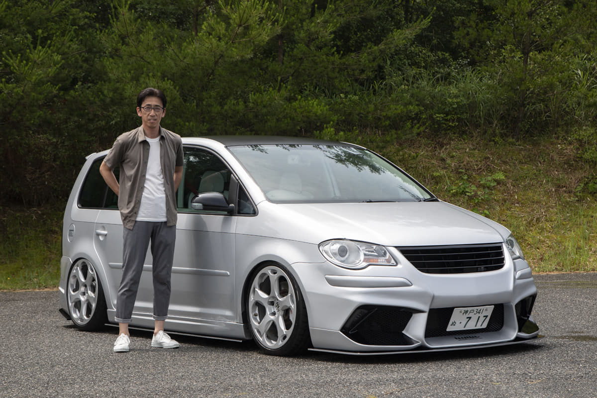 トゥーランの達人・朝倉サンがまたまた登場。ガヤルド純正品を使ったフロントバンパーとホイールといった大技から、デイライト付きウインカーや各部塗り分けなどの小技に至るまで、長年の経験と情熱の結晶といった作品です。でもじつは年間ランカーとなって以後の変更点はスプリッターにシルバーの差し色を入れた程度。にもかかわらずこのポジションというのは、今見てもやはりスゴイということ。これは今からスタコン年間ランキングが楽しみです。選んだホイールはスタコンでも異色中の異色、ガヤルド純正。でも不思議とマッチしてるのがまたスゴイところ。内外装とも奇をてらわないカラーリングでまとめているものの、エアロ、シートといった大物アイテムや集積した細部変更によって独自の空気感が。コンピュータなど各部の機能系も抜かりないのはさすがです。
