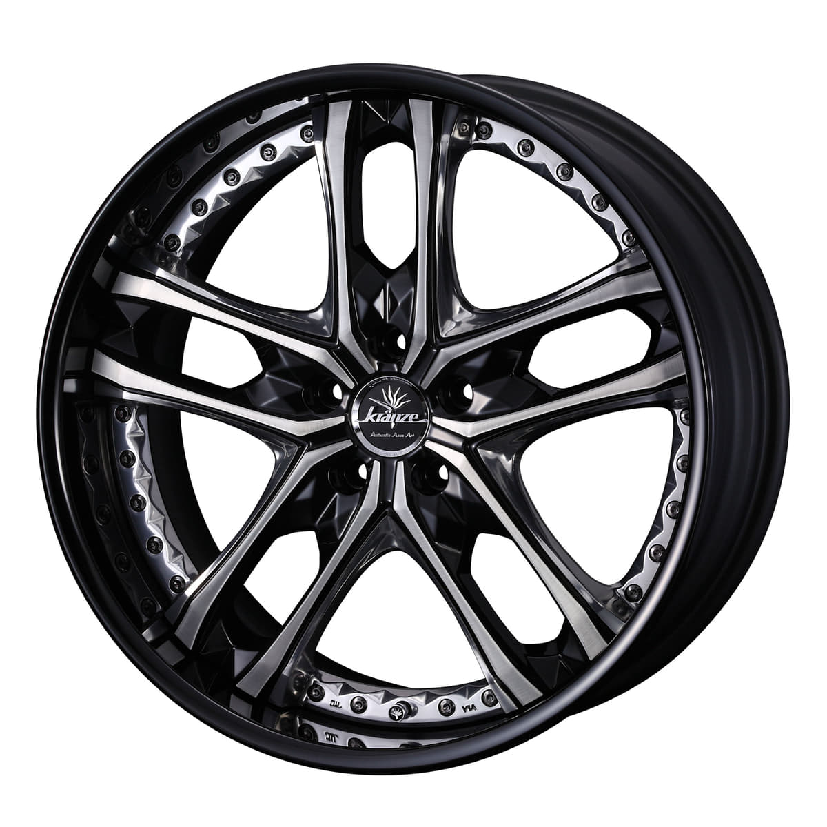 高級3ピース構造のホイールブランドでおなじみのクレンツェ。東京オートサロンでベールを脱ぐ『クレンツェ・シンティル』こそ、度肝を抜かれてしまったデザインの持ち主です。クレンツェといえば、複数の直線と曲線、さらに絶妙なアールで描かれた3Dデザインで目の肥えたドレスアッパーたちを魅了してきましたが、シンティルではさらなる驚愕な仕掛けの数々を投入。芸術的なラインを持つスポークも魅力ですが、特筆すべきはナットホールまわりの造形で、まるでダイヤモンドカットを連想させる極上の煌めき。さらに強烈なインパクトを放つのがピアスボルトの台座部分で、ここにも彫刻のような唯一無二の形状を与えるなど、デザインを追求するクレンツェならではの”魅せヂカラ”がふんだんに投入されていますよ。