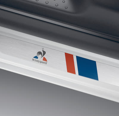 専用ボディカラー(ブラン クオーツまたはグリ リュネール) 専用サイドストライプ 専用デカール ボディ同色サイドプロテクションモール(ルコック スポルティフロゴ入り) 専用キッキングプレート ルージュドアミラー プライバシーガラス コーナリングランプ機能付きフロントフォグランプ 専用16インチアロイホイール ルージュ内装トリム(ダッシュボード・エアコンベゼル) 専用ロゴプレート レザー調×ファブリックコンビシート 前席シートヒーター サブウーファー リヤカメラ リヤシート下収納ネット