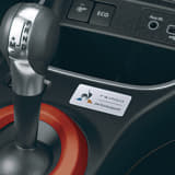 このボディカラーに合わせた専用サイドストライプデカール、ピンポイント・ファッション的な赤いルージュドアミラー、専用16インチアロイホイールなどがスポーティな印象を際立たせている。さらに前席シートヒーター、バックソナー+リヤカメラ、4スピーカー+サブウーファーなどの装備が快適なドライブをサポートしてくれる。