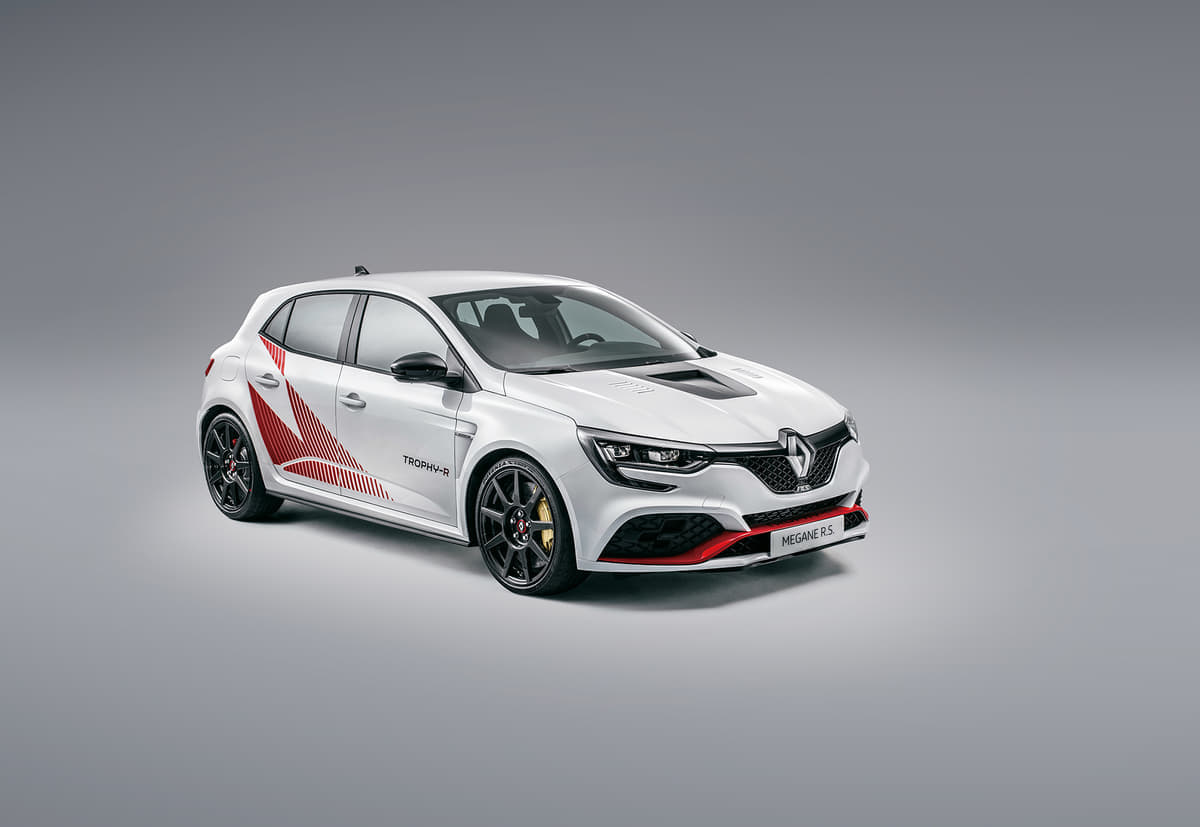 ルノーがF1を頂点とするモータースポーツで培ったノウハウや先進の技術を駆使し、”メガーヌ R.S.”が持つ潜在能力を最大限に引き出した超ホットモデルが「メガーヌR.S.トロフィーR」。先行して発売されたメガーヌR.S.トロフィーと同じ1.8リッター直4直噴ターボエンジン(最高出力300PS、最大トルク400N・m)ながらも、130kgに及ぶ軽量化を実施した特別モデルだ。