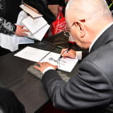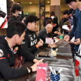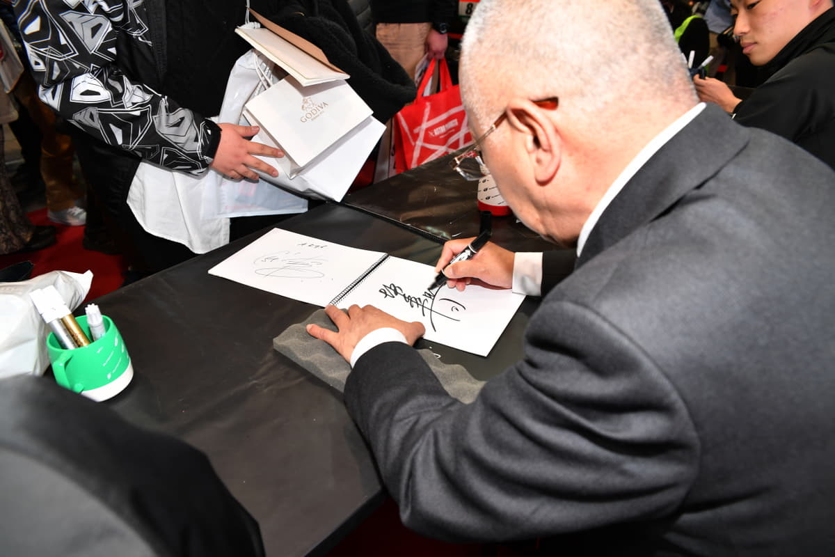 ご存知の通り、坂東代表といえば、元レーシングチーム監督であり、現在ではSUPER GTシリーズを束ねるGTAのトップ。強面な雰囲気を持っており、緊張感のあるトークショーに発展。なかなか公(おおやけ)に言えなさそうなディープな内容も飛び出したトークショーに続いて、通常なら4選手のみで行われるサイン会にも、板東代表がまさかの着席。なんと、GTファンへのサービスにも積極的に参加した。