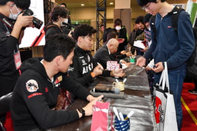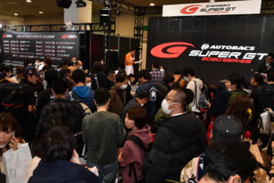 この超レアなサイン会にはファンは大喜び。SUPER GTブース前には板東代表のサインを求める長蛇の列ができていた。何度も言うが、サイン会に登場することなどめったにない坂東代表だけに、この場にいた人たちは非常に貴重な機会となったはず!?