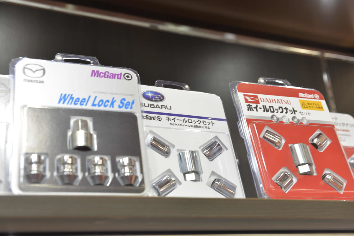なお、一部の輸入車では純正ラグボルトにロックボルトが使用されているが、整備性の都合でキーアダプターの種類は市販品より限られているとのことなので、より高い防犯性を求める人や、通常のラグナットしか使われていないクルマでは内溝タイプのロック機構が付いたラグナットを使用したい。
