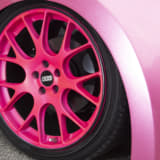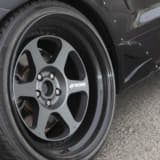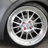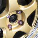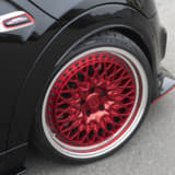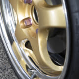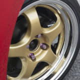 赤いコンパクトなボディに似合うということでゴールドディスクのステップリムホイールを選んだ本村サン。ロックボルトがパープルというあたり女性らしいチョイスですね。しかもインセットは前後で3ミリ差をつけてツライチを狙うという本格派でもあります。その調子で育てていってほしいですね。なつきサンと。