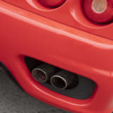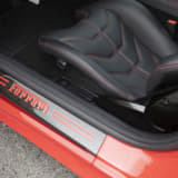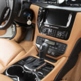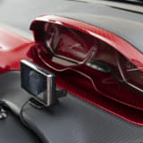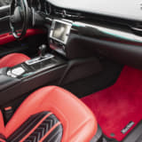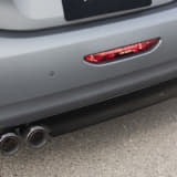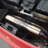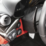大人なホイールが目を引きますが、一番の自慢はリアのストラダーレ用ディフューザーのメッシュ加工なんです。本来センターマフラー用なのに左右出しにこだわり、職人が手作業でメッシュをラウンド加工して張ったというシロモノ。コンソールの水圧転写もそうですが、シックなこだわりが印象的ですね。