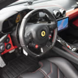 マッキナの間口の広さを示すようなフェラーリの登場。内外装にカーボン調の水圧転写を施してディテールアップしたほか、エアロの同色塗装、ルーフのマットブラックラッピングでバランスよくカラーコーデしています。とくにインテリアのコントラストのよさは出色の出来。マッキナの西坂サンが代理で登場です。