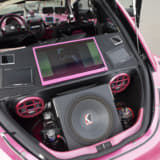 黒×黒で精悍にまとめたX1。BMWとTSWの組み合わせもおもしろいですね。基本的にDIYというのも感心。内装はセンターパネルの水圧転写加工やアルミペダルで質感をアップしているほか、オーディオにも凝っていて、スピーカはフランスのブラムに変更。今後はデジタルアンプ化で音質アップするそうです。