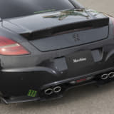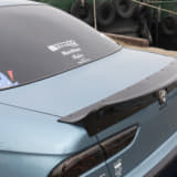 派手さはとくにないのに、攻め込んだホイールマッチングや前後のカーボンエアロが只者でないムードを醸していますね。大胆に反り返ったトランクスポイラーの存在感もかなりのモノ。この路線での進化をもっと見たくなります。