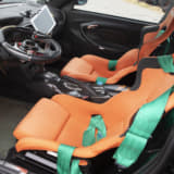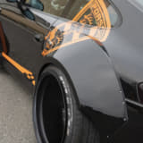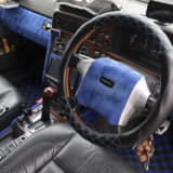 片側200ミリずつの超ワイドフェンダーとリバレルした極深リムが圧巻。リアのダクト加工と4本マフラー、そしてオレンジの差し色も相まって、押し出し度は今回最強かも。フルバケットのレカロまでオレンジに張り替えていますが、シートはロールケージ追加とともに変更を検討中とか。まだまだワイルドになっていきそうです。
