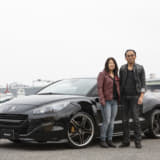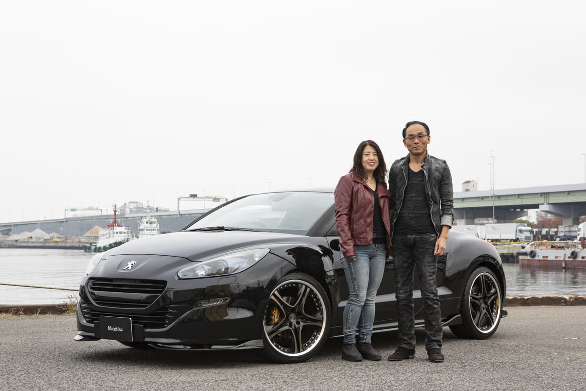 黒のRCZをバックに、熟年夫妻がレザーをまとってニッコリ。今回のスタコンメインカットで、とても気に入った一枚です。クルマもホイールやエアロで渋い味わいを出せてて、お二人によく似合ってると思います。こんどは奥様用の508GTをイジっていくそうで、それもぜひ見せてくださいね!